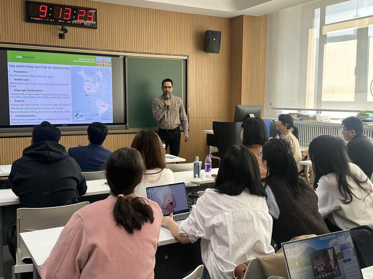 11月5日-6日,“中阿大讲堂”暨国际农业与食品经济系列研讨会在我院成功举办。本次活动特邀阿根廷布宜诺斯艾利斯大学农学院的华金·佩雷斯·马丁教授出席并作专题报告,与学院师生围绕中阿城市食品供应链现状与治理挑战进行了深入交流。