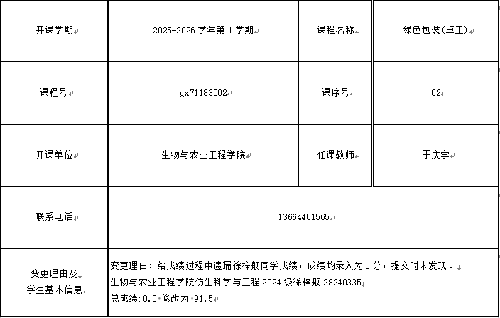 根据《关于进一步明确本科生课程考核等有关问题的通知》(校教字[2018]47号)文件有关精神,现对以下课程成绩更正进行公示: